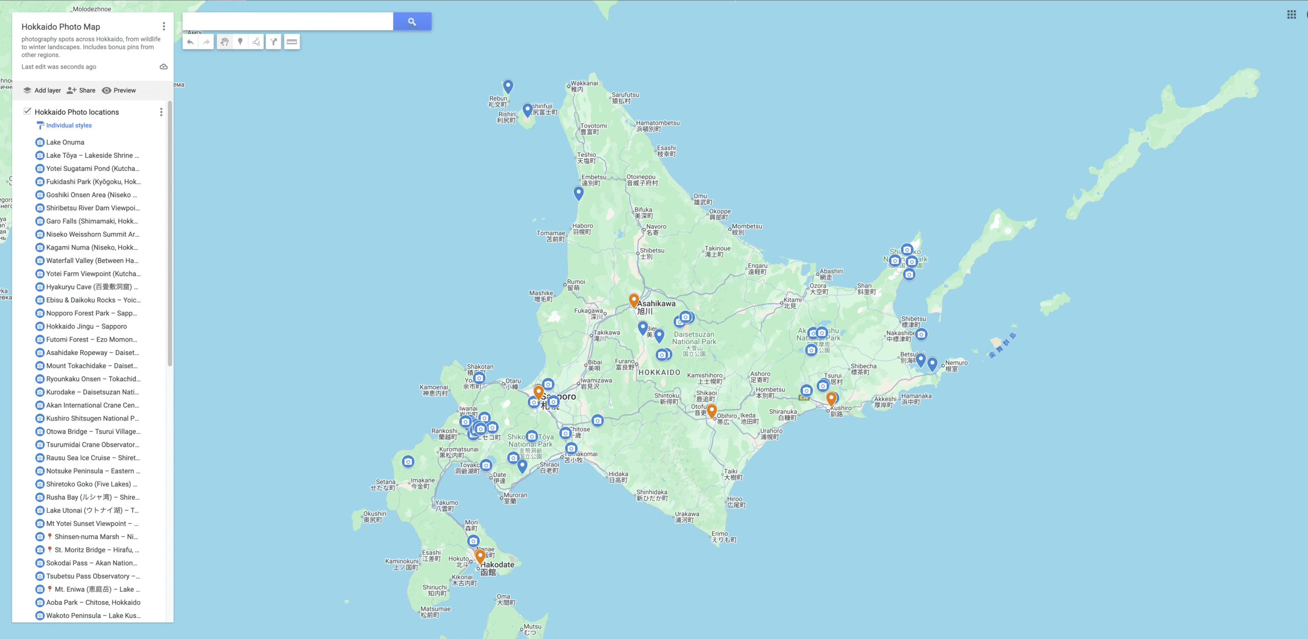 Many current pins are focused around Niseko and southwest Hokkaido, where I live and explore regularly — but this is only the beginning. Hokkaido is vast, wild, and full of untapped potential, and this guide will continue to grow.